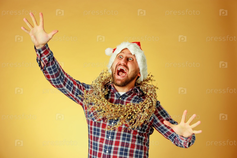 Эмоциональный мужчина в рождественской шапке