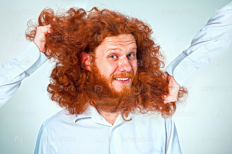 Эмоциональный рыжеволосый кучерявый парень