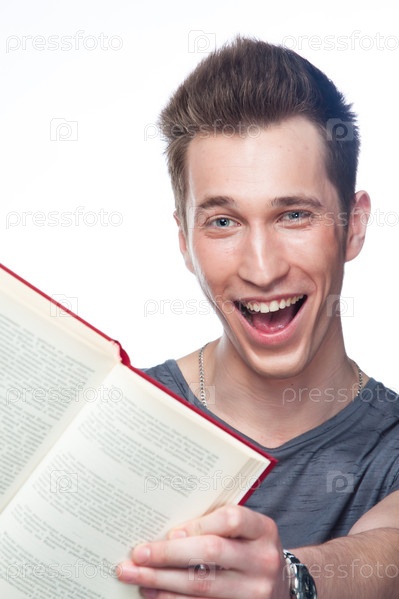 Портрет привлекательного парня, который готовится к экзаменам в университете или колледже