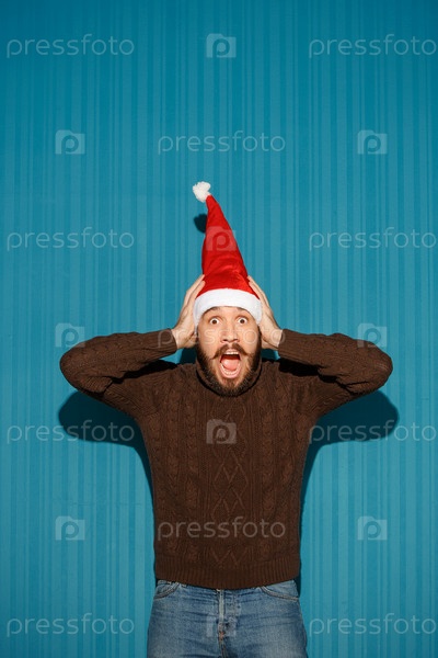 Удивленный парень в шляпе Санты