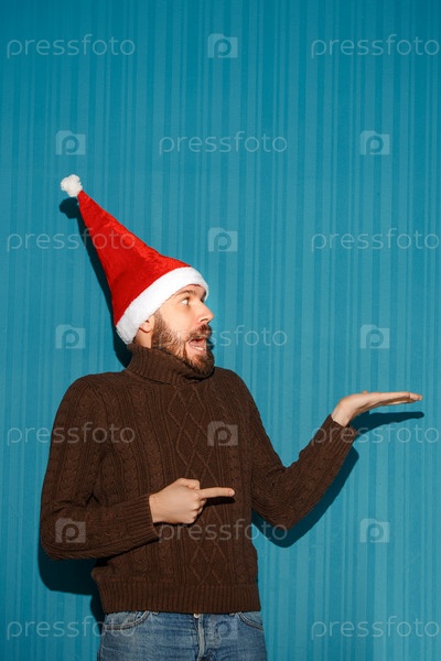Удивленный парень в шляпе Санты
