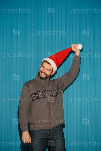 Эмоциональный парень в шляпе Санты