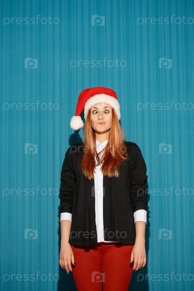 Эмоциональная девушка в шапке Санты