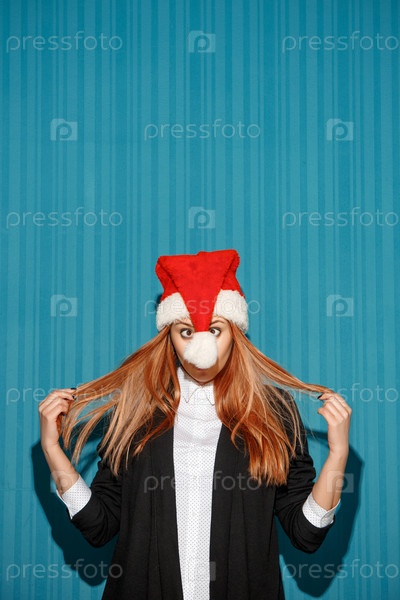 Эмоциональная девушка в рождественской шапке