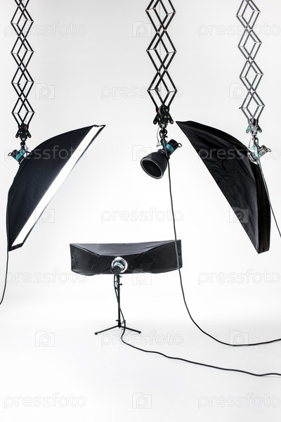 Пустая фотостудия с осветительным оборудованием