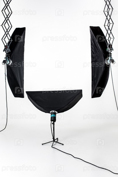 Пустая фотостудия с осветительным оборудованием