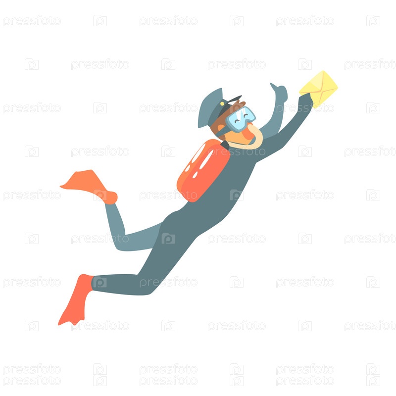 Почтальон со снаряженим для дайвинга и письмом