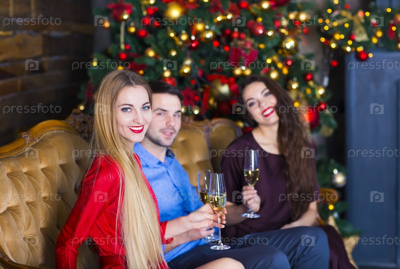 Друзья с бокалами шампанского