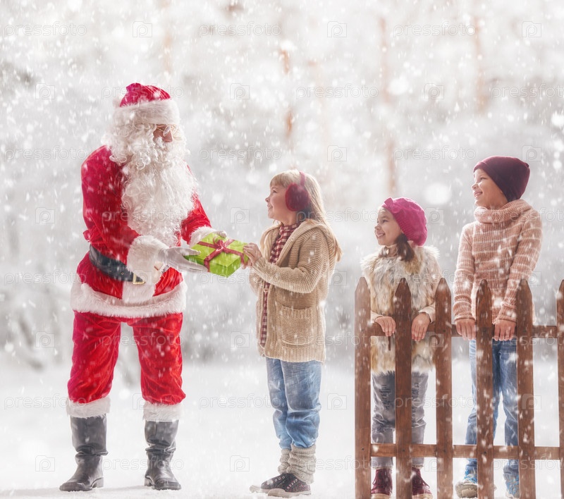 Санта дарит детям подарки