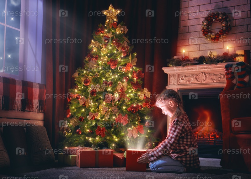 Девочка у рождественской елки