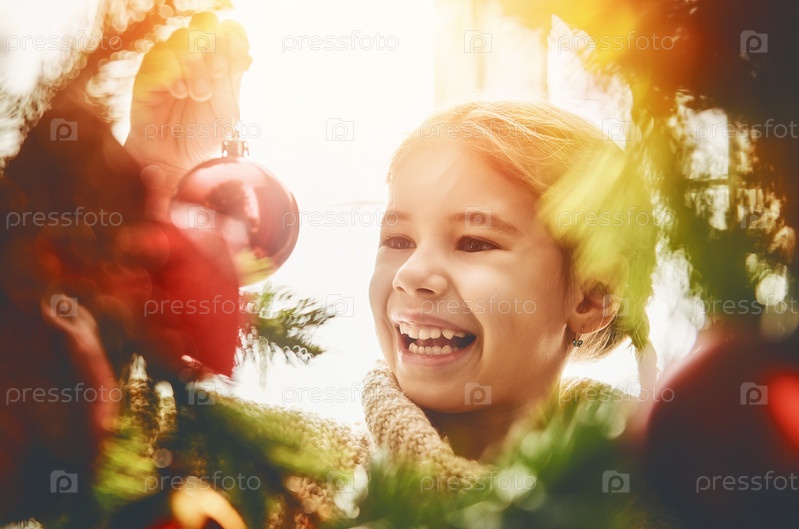 Девочка украшает елку