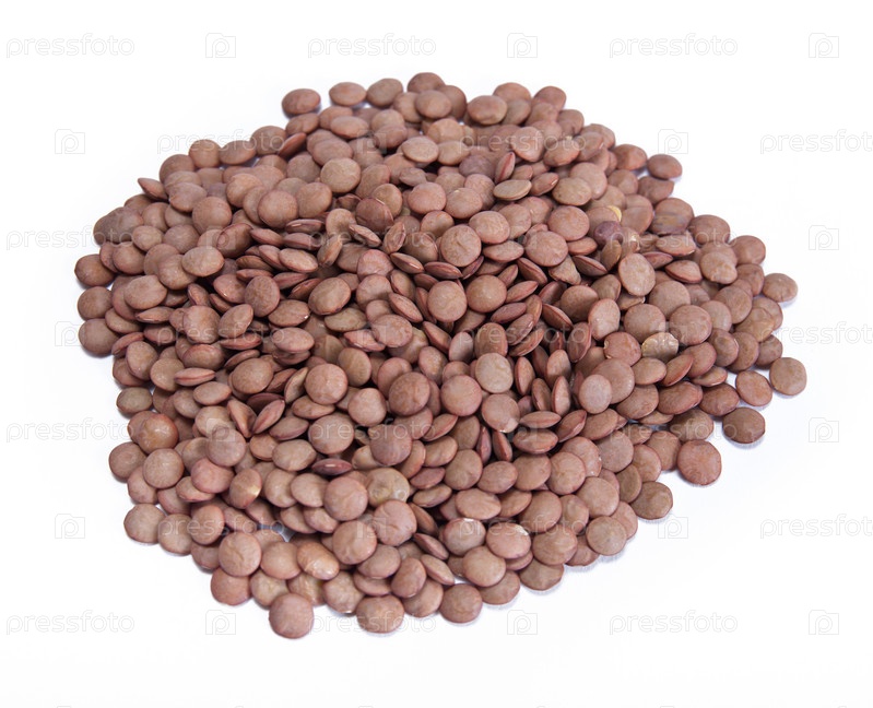 Горсть чечевицы на белом фоне