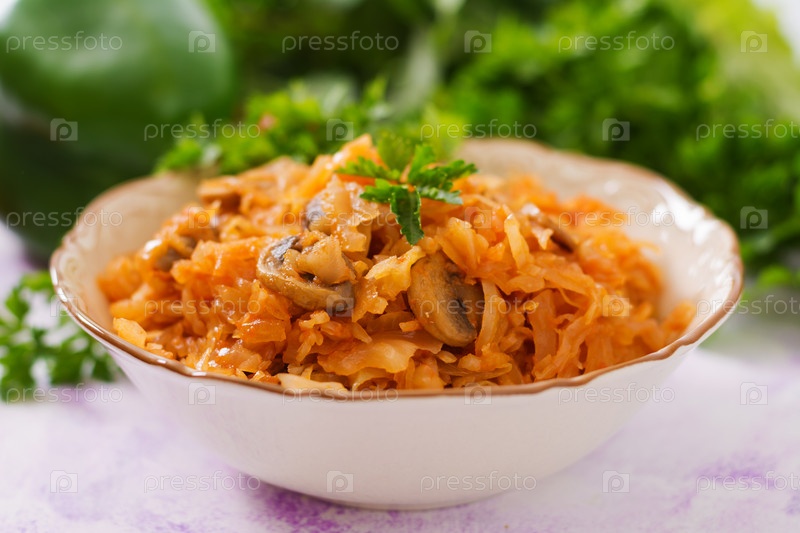 Тушеная капуста с грибами