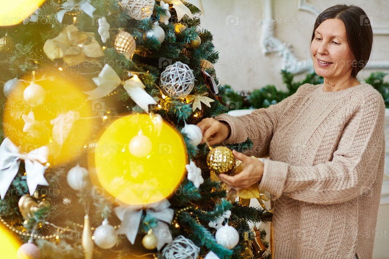 Женщина украшает елку