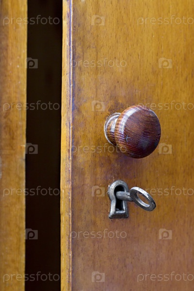 Старый железный ключ в замке двери