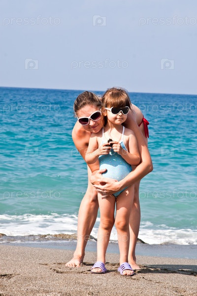 Мама и ребенок на берегу моря