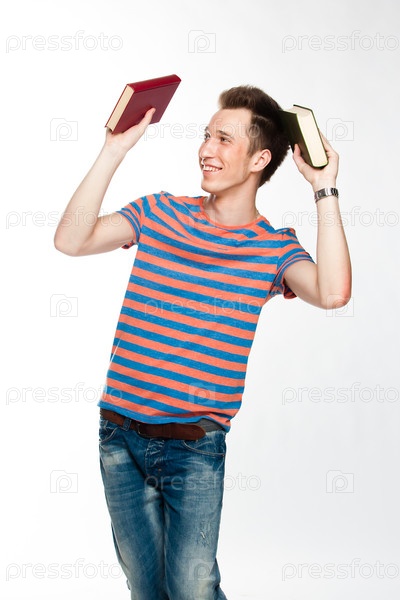 Портрет молодого привлекательного Парень готовится к экзаменам в университете или колледже