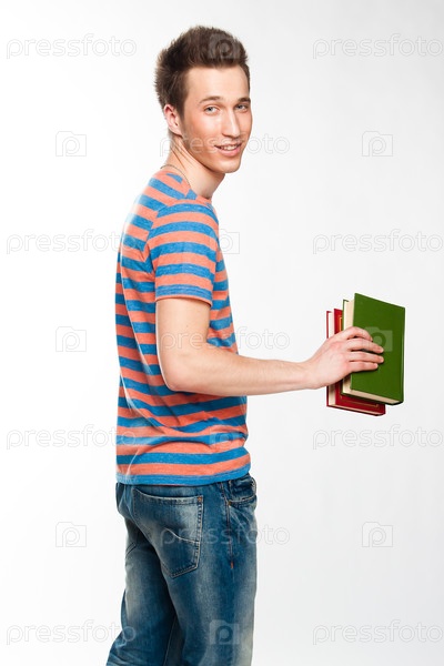 Портрет молодого привлекательного Парень готовится к экзаменам в университете или колледже
