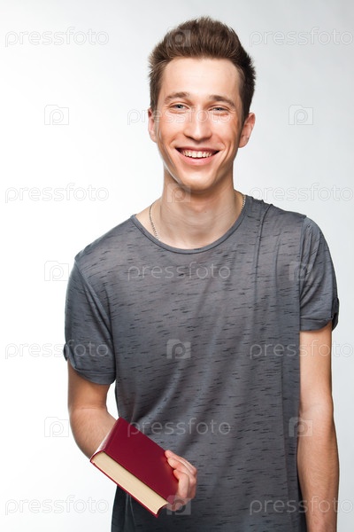 Портрет молодого привлекательного Парень готовится к экзаменам в университете или колледже