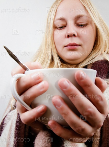 Девушка с чашкой, завернутая в плед