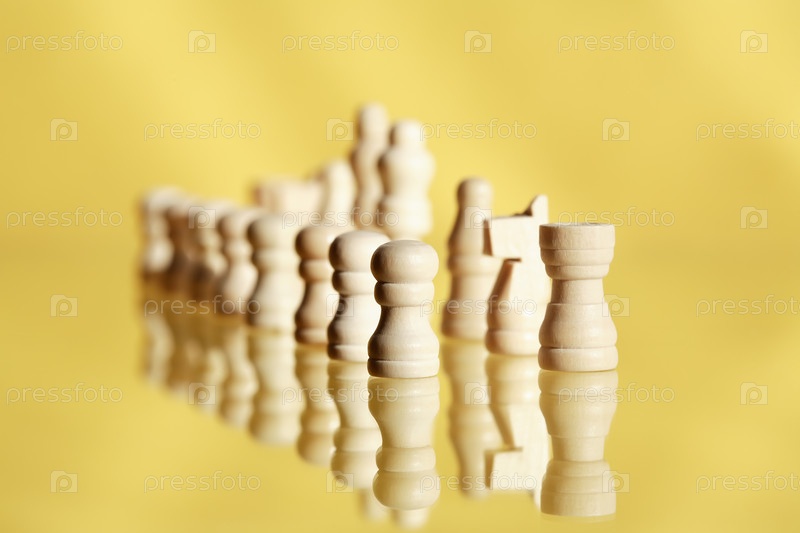 Шахматы в ряд на желтом фоне с отражением