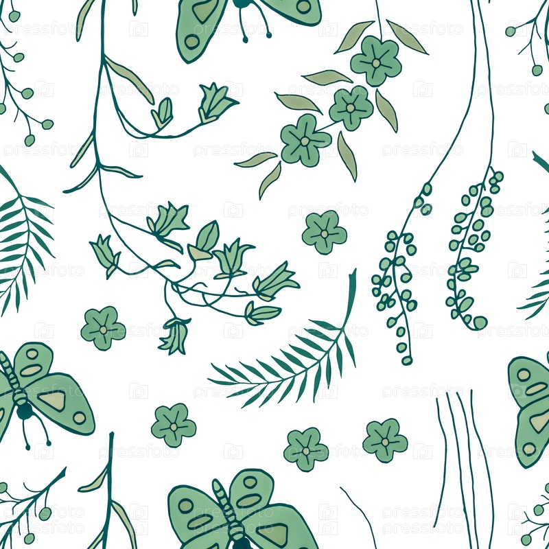 Бесшовный фон растений и бабочек