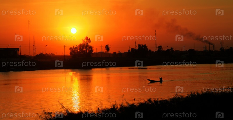 Река Евфрат в городе Эн-Насирии, Ирак