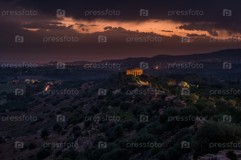 Закат в долине храмов в Агридженто в Сицилии