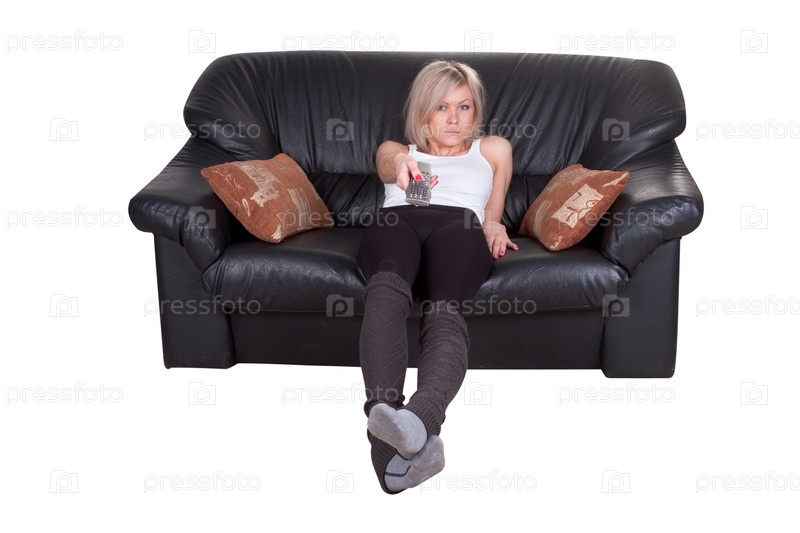 Девушка с пультом дистанционного управления на диване