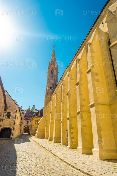 Улица с традиционными зданиями в Братиславе, Словакия