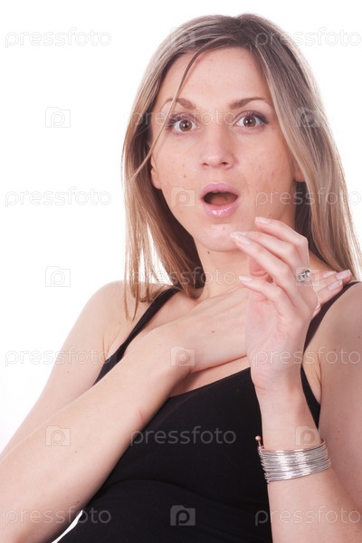 Портрет удивленной девушки на белом фоне