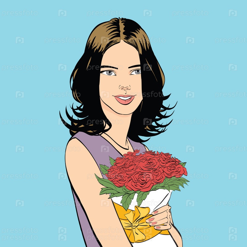 Красивая молодая женщина с букетом роз