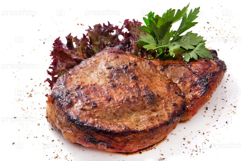Стейк из свинины с зеленью, травами и перцем