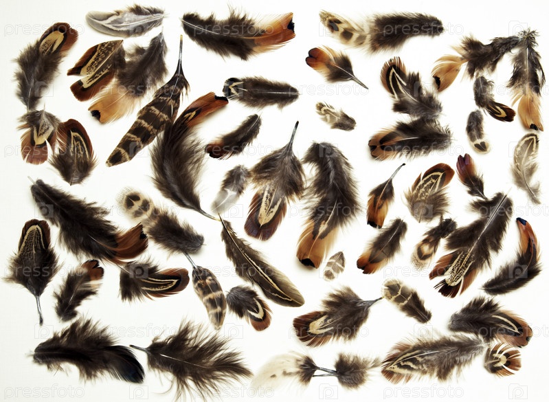 Композиция из перьев на белой бумаге