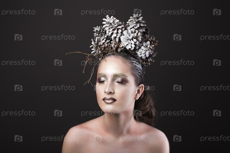Девушка в венке из шишек