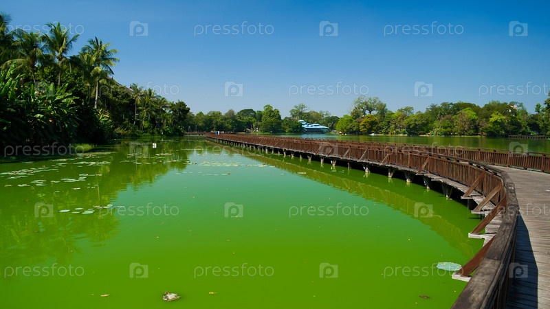 Деревянный мост над озером Кандавги в Янгоне, Мьянма
