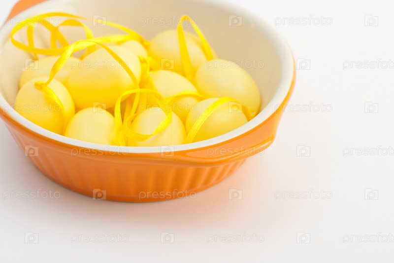 Декоративные пасхальные яйца в оранжевой миске