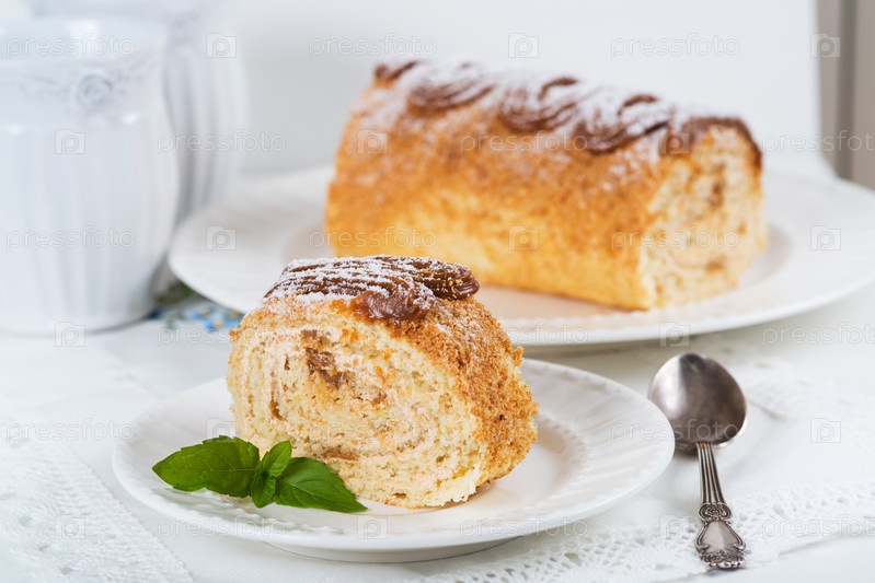 Бисквитный рулет с сгущенным молоком