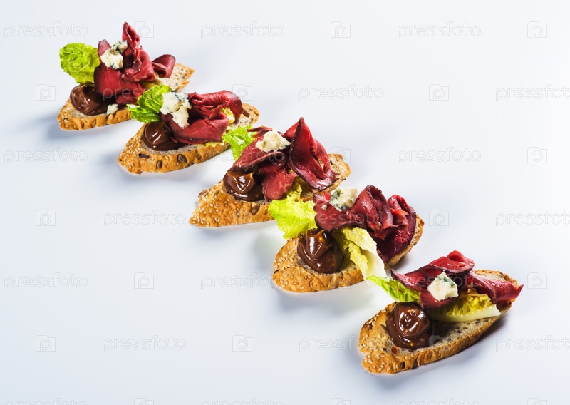 Брускетты с говядиной и сыром