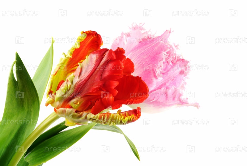 Весенние тюльпаны крупным планом, изолированные на белом фоне