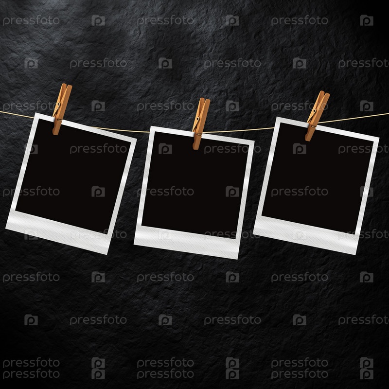 Старые моментальные снимки висят на прищепках на веревке