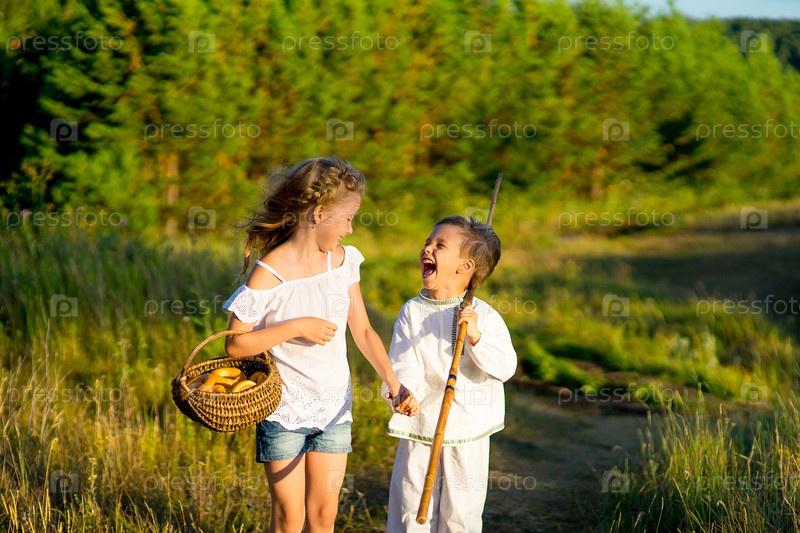 Брат и сестра на прогулке