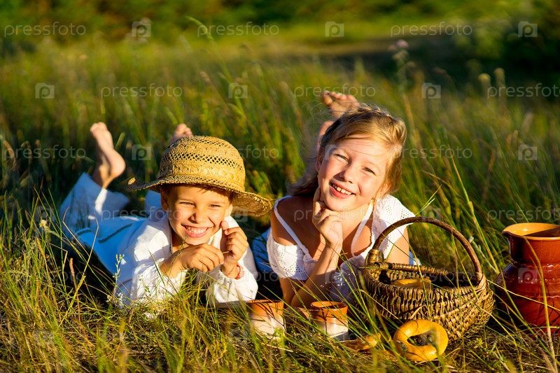 Брат и сестра на пикнике