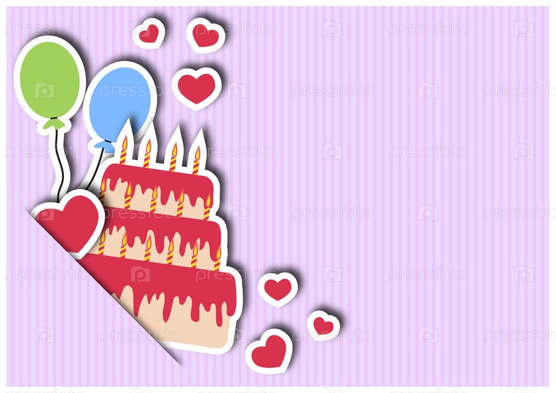 Открытка с тортом и воздушными шарами. Векторная иллюстрация