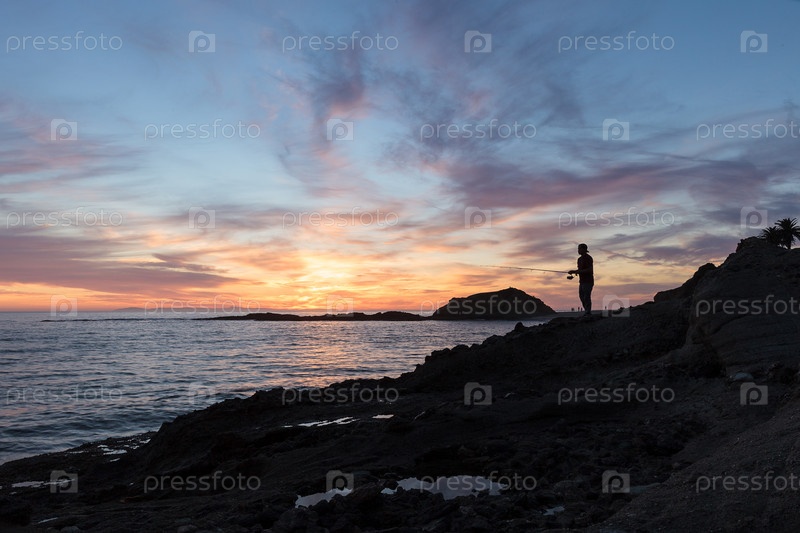 Силуэт рыбака на пляже в Южной Калифорнии