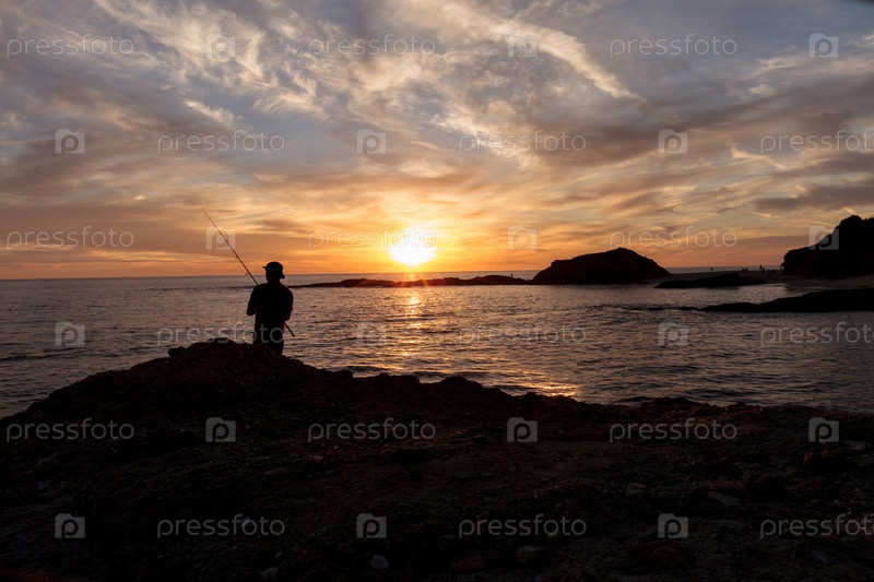 Силуэт рыбака на закате в Южной Калифорнии