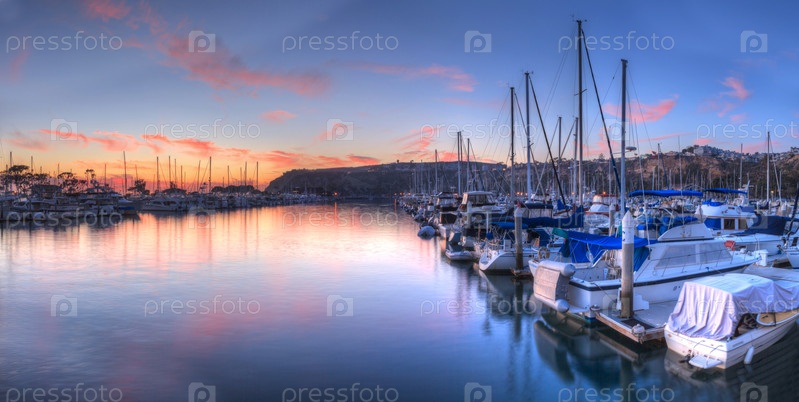 Закат над парусниками в Дана-Пойнт-Харбор