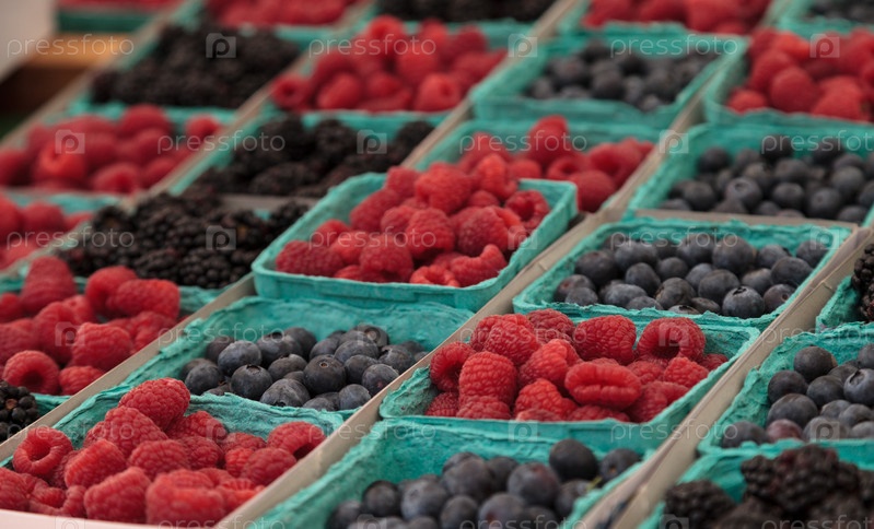 Ягоды малины, черники и ежевики