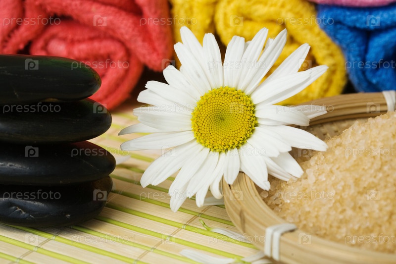Ромашка, соль и черные камни для спа
