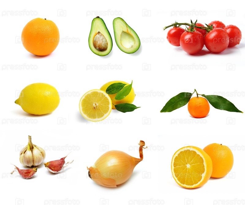 Группа овощей и фруктов на белом фоне